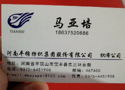 | 供貨企業(yè) | 平頂山寶棉紡織有限公司 |