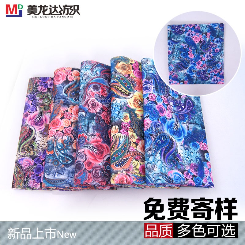 備注 10安印花帆布滌綸轉移印花帆布玫瑰腰果印花帆布批發(fā)箱包桌布鞋面料