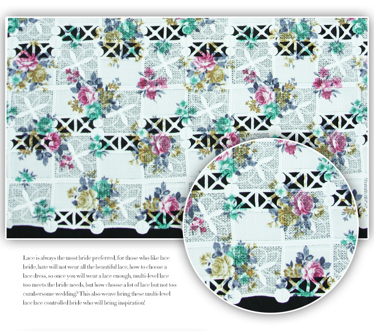 產(chǎn)品描述 http://jinjutextile.1688.com Basic Information基本信息 面料材質(zhì): 滌綸水溶蕾絲 面料型號(hào): JJ418-240 推薦款式: 連衣裙、短裙、襯衫、禮服等 面料幅寬: 120cm(可定做) 面料花型: 方格印花 面料售價(jià): 42元 面料用途: 服裝面料/服裝輔料 面料顏色: 花色 起拍數(shù)量: 30碼 面料指標(biāo): 彈力:無彈 (選項(xiàng):無彈/適中/彈力/超彈力 ) 透視:半透明 (選項(xiàng):超透/薇透/適中/不透) 厚度:適中 (選項(xiàng):薄/適中/稍厚/超厚 ) 面料洗滌: 建議干洗 面料說明: 蕾絲有著高貴的血統(tǒng),是高級(jí)定制中精湛的手藝,如今運(yùn)用在高級(jí)成衣里,從最初的手工編織的網(wǎng)眼花邊,到服裝上的點(diǎn)綴裝飾,再到透視裝的面料,或華麗純真、或性感妖嬈,總之蕾絲已不再是簡單的服裝裝飾,具有了自己的性格魅力,成為了調(diào)劑女人香的甜蜜芳香劑。