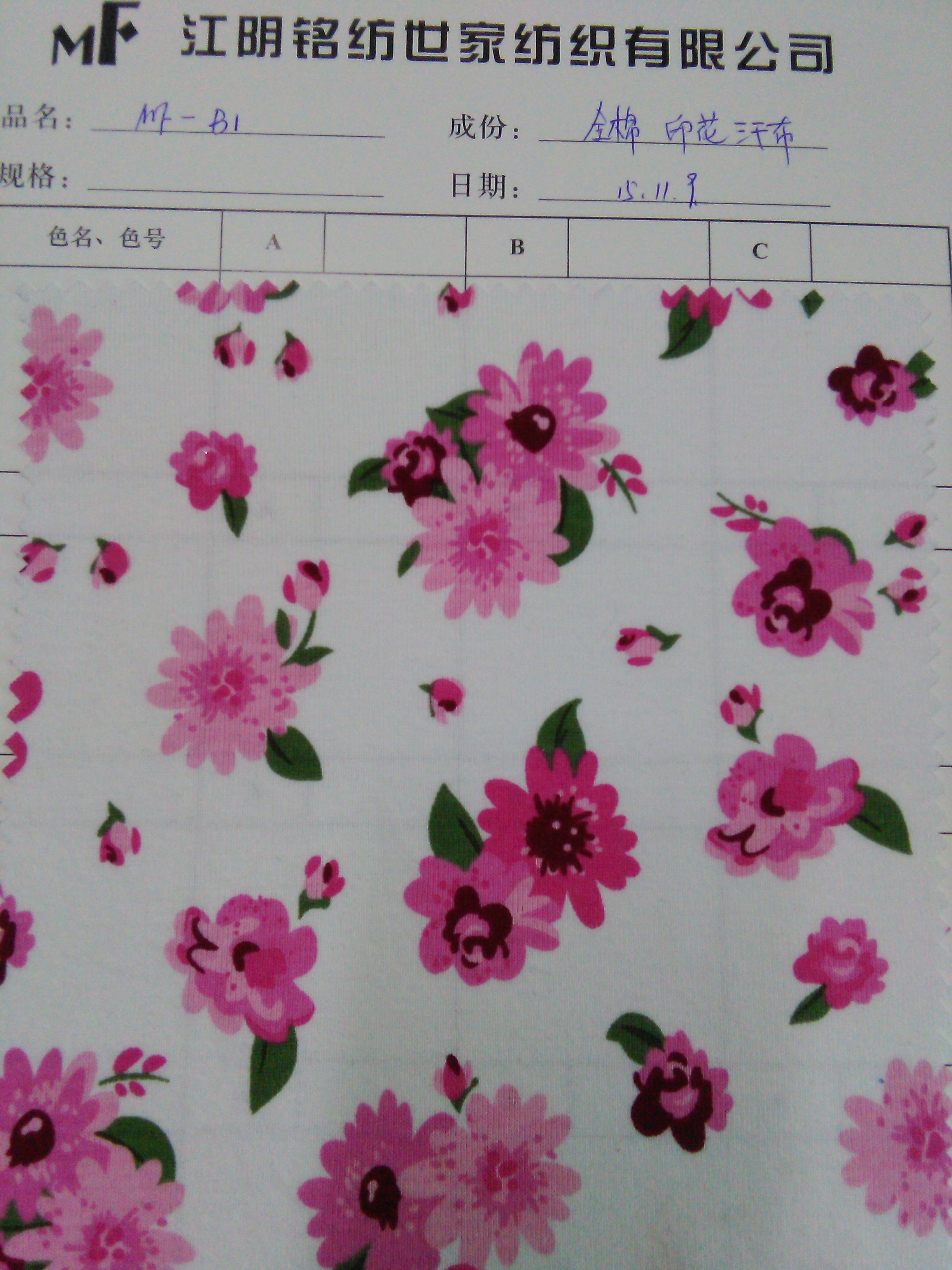 | 備注 | 可來樣定紡 |