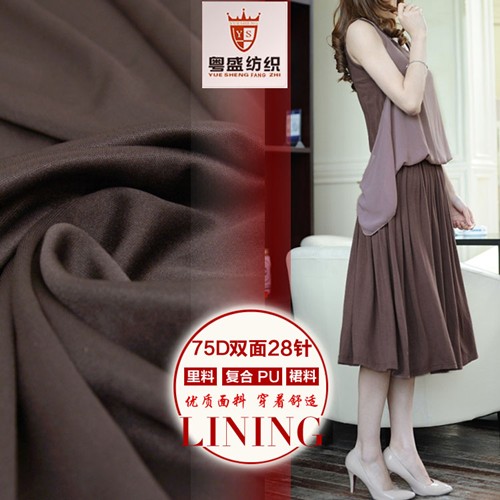 | 產(chǎn)品名稱 | 廠家直銷 75D雙面28針 全滌綸里布 裙子里料 |
