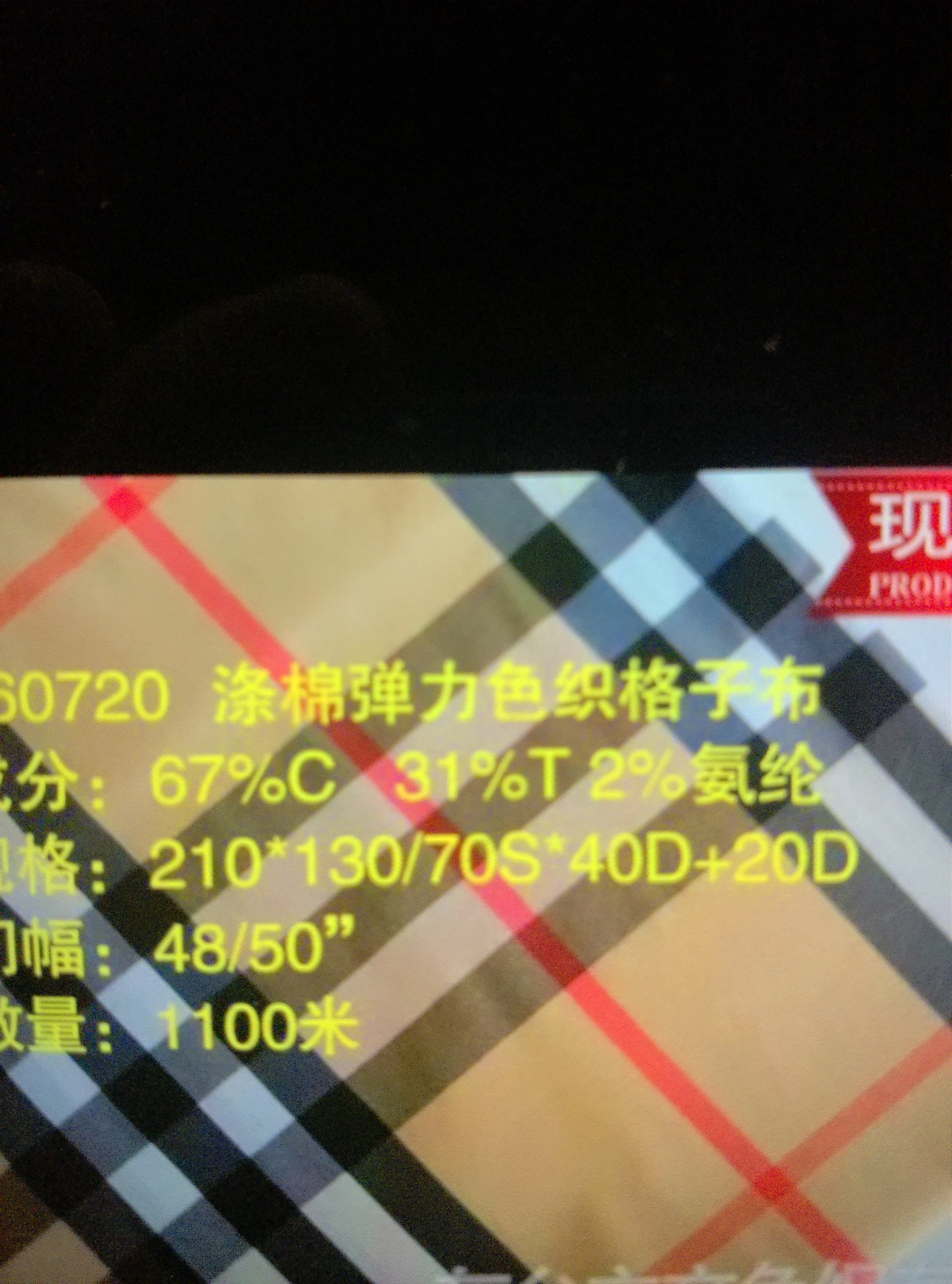 產(chǎn)品描述 成分:67%C 31%T 2%氨綸 規(guī)格:210*130/70S*40D+20D 門幅: 48/50”