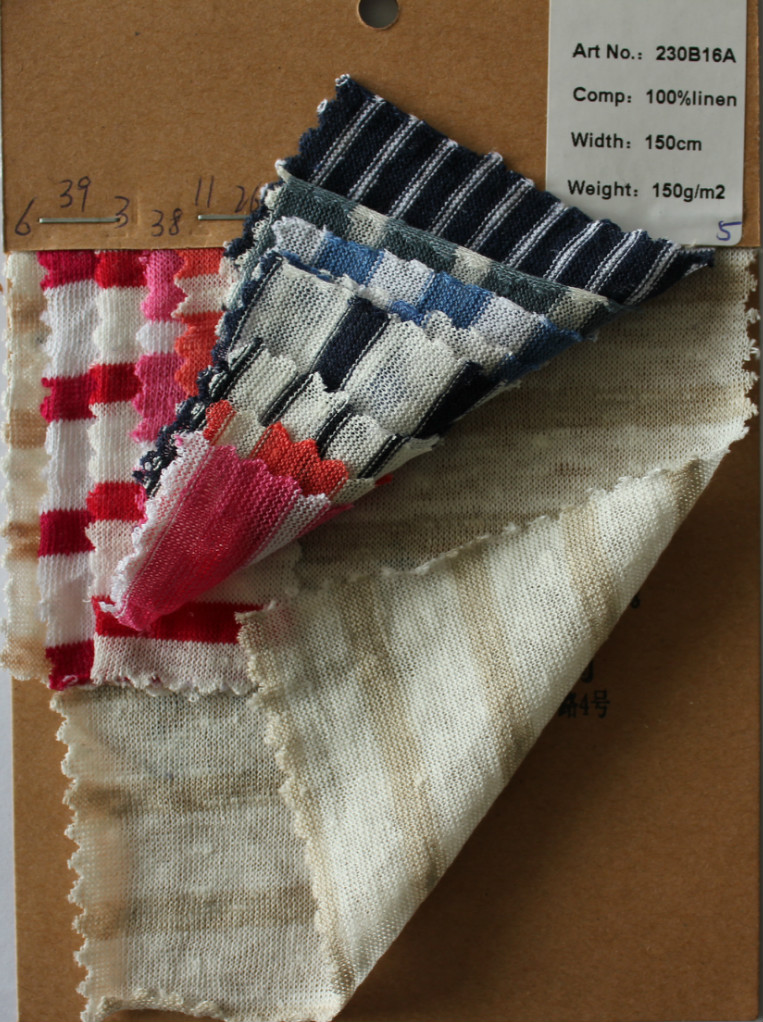 產(chǎn)品名稱 亞麻針織色織條紋面料