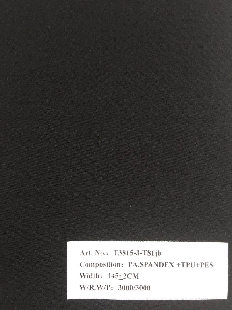 產(chǎn)品描述 品名:尼龍四面彈+TPU+提花滌綸布 編號:T3815-3-T81jb 成份:PA.SPAndEX+TPU+PES 幅寬:145±2CM