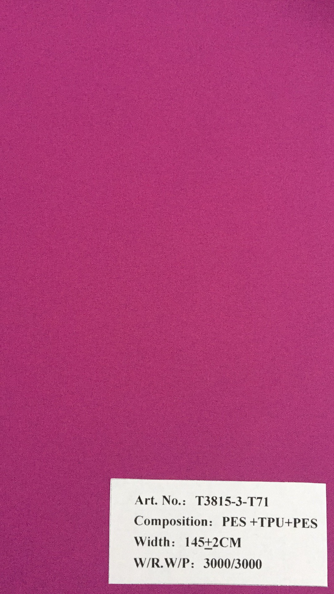 產(chǎn)品描述 編號(hào):T3815-3-T71 成份:PES+TPU+PES 幅寬:145±2CM 工藝:透氣透濕3000/3000