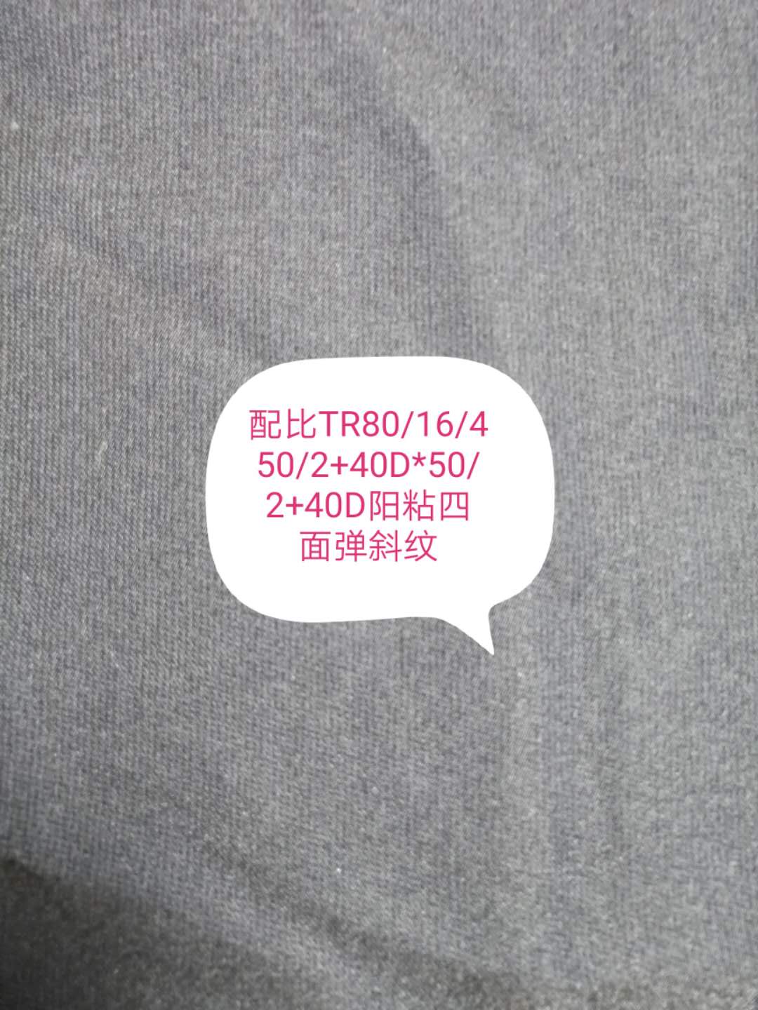 | 產(chǎn)品規(guī)格 | T80/R16/SP4 50/2+40Dx50/2+40D陽粘四面彈斜紋 |