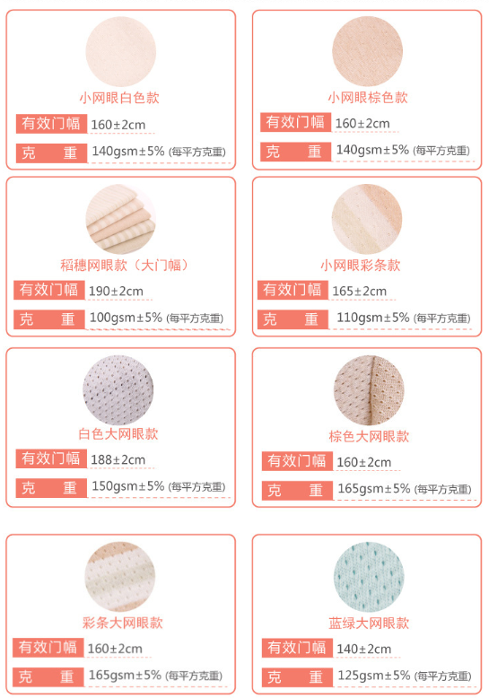 產(chǎn)品描述 現(xiàn)貨 有機棉彩棉針織網(wǎng)眼面料 春夏薄款透氣嬰兒A類爬服睡衣面料