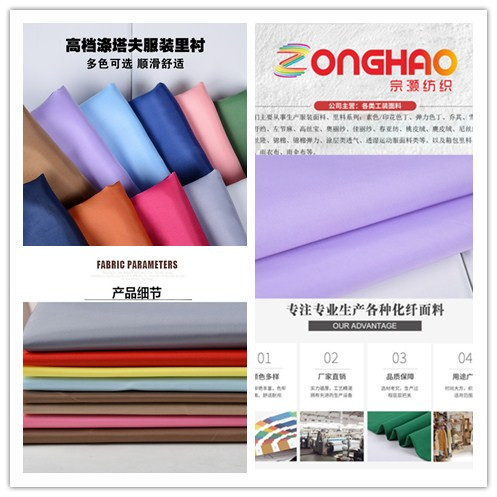 產(chǎn)品描述 現(xiàn)貨190T210T滌塔夫 塔夫綢 精品里料 爽滑舒適 色彩豐富 多色可選 紋理清晰 結(jié)實耐用 可來樣定做