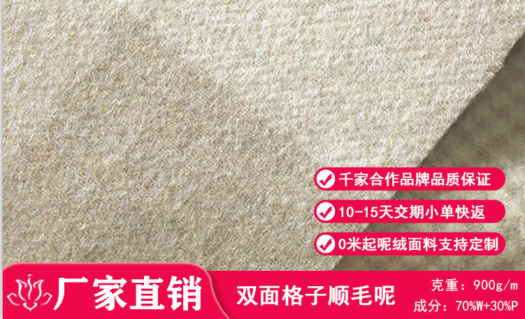 | 產(chǎn)品規(guī)格 | 70毛30滌女裝雙面格子順毛呢 |