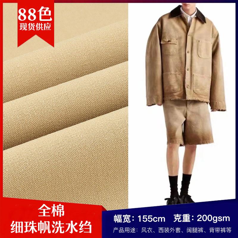 產(chǎn)品名稱(chēng) D301細(xì)珠帆水洗縐砂洗全棉加厚加密復(fù)古褲服鞋帽裝飾布面料現(xiàn)貨