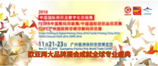 由中國(guó)網(wǎng)印制像協(xié)會(huì)、廣州粵展展覽有限公司主承辦的“2016中國(guó)國(guó)際網(wǎng)印及數(shù)字化印刷展(CSGIA)/FESPA中國(guó)數(shù)碼印刷展/中國(guó)國(guó)際紡織品印花展/SDPE廣州國(guó)際網(wǎng)印噴印數(shù)碼印花展”將于11月21-23日在廣州琶洲保利世貿(mào)博覽館盛大開(kāi)幕。本屆展會(huì)由亞歐三大行業(yè)品牌聯(lián)合打造,將繼承和發(fā)揚(yáng)往屆展會(huì)高規(guī)格、大規(guī)模、專(zhuān)業(yè)化的特色,不斷刷新升級(jí),打造2016中國(guó)國(guó)際網(wǎng)印及數(shù)字化印刷展嘉年華。