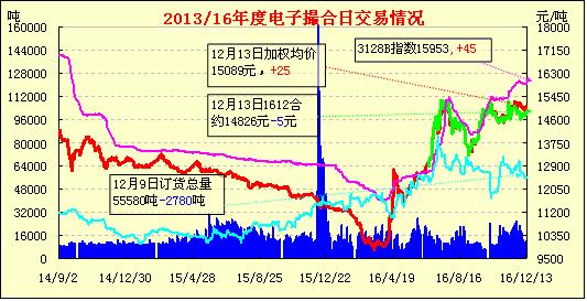 12月13日,電子撮合交易成交量增加,合約均價漲跌不一,活躍交投主要集于中遠合同。13日,山東巨野、成武縣,以及濟寧金鄉(xiāng)縣的棉花加工企業(yè)收購持續(xù)上量,收購的籽棉加工成皮棉主要以4級為主,棉花質量次于2015年度。籽棉統(tǒng)收價(不分籽棉等級、衣分率40%、水分12%)3.9元/斤,價格變化不大。近日,棉籽價格下跌明顯,12月13日棉籽價格為1.66元/斤。由于棉籽價格的下跌,造成了棉花企業(yè)皮棉成本上升每噸180元左右。