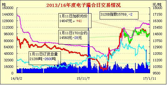 1月11日,電子撮合交易成交量上漲,合約均價多數(shù)收漲,活躍交投主要集中于中期合同。2016年鹽城棉區(qū)各縣、市,棉花種植面積降幅巨大,所以他們不僅走村串戶收到的棉花很少,而由于油費車費支出沒減,加上大的棉企運距遠(yuǎn),驗收嚴(yán)格,價格波動,參與販棉的人幾乎沒賺到什么錢。眼下臨近春節(jié),農(nóng)田棉花應(yīng)收也已盡收,而農(nóng)戶惜存至今的籽棉如不計他用,也將在春節(jié)前交售出去,以騰清房屋,除舊迎新。當(dāng)然,也有少數(shù)農(nóng)戶把棉花繼續(xù)捂著不賣,到了開春,價高便脫手。反之則軋皮賣籽,把皮棉單獨賣給小紡廠或加工成絮棉、棉胎出售。