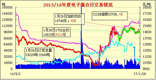 1月26日,電子撮合交易成交量下降,合同均價(jià)多數(shù)收漲,活躍交投主要集中于中遠(yuǎn)期合同。在蘇北,因棉花種植面積減幅較大,近兩三年棉企經(jīng)營(yíng)狀況不景氣,出現(xiàn)轉(zhuǎn)型、變賣(mài)、歇業(yè)現(xiàn)象較多,而參與收購(gòu)的企業(yè)也因?yàn)槭袌?chǎng)價(jià)格的波動(dòng),流通資源量小,購(gòu)銷(xiāo)成本難降而多數(shù)處于微利或微虧的狀態(tài),企業(yè)對(duì)未來(lái)發(fā)展感到迷惘。紡企負(fù)責(zé)人表示,近幾年因?yàn)閲?guó)家棉業(yè)政策調(diào)整面較大,棉花生產(chǎn)格局發(fā)生變化,市場(chǎng)需求出現(xiàn)不足,企業(yè)生產(chǎn)成本有增無(wú)減等因素,經(jīng)營(yíng)難度大,獲取效益有限,多數(shù)企業(yè)處于保吃飯、??蛻?、留工人的狀態(tài)。