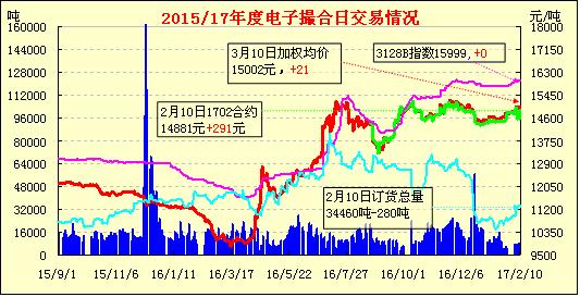 2月10日,電子撮合交易成交量減少,合同均價多數(shù)收漲,活躍交投主要集中于中遠期合同。近期棉花走勢糾結(jié),鄭棉期貨節(jié)后大漲兩天之后,開始顯示出上漲乏力的態(tài)勢?,F(xiàn)貨市場陷入僵局,外盤紐約棉價也呈現(xiàn)出滯漲的現(xiàn)象,再加上近期美元指數(shù)止跌上行,ICE漲勢有所遏制。