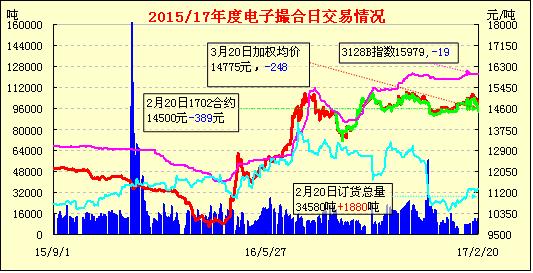 2月20日,電子撮合交易成交量增加,合同均價(jià)全部收跌,活躍交投主要集中于中遠(yuǎn)期合同。近日,河北省棉花主產(chǎn)區(qū)之一的衡水市400型棉企開始了節(jié)后送檢工作,然而這些企業(yè)收購(gòu)籽棉相當(dāng)謹(jǐn)慎。筆者從中國(guó)棉花公證檢驗(yàn)網(wǎng)獲悉,截止2月19日河北衡水有2家棉企送檢新棉524包計(jì)119.7731噸,系春節(jié)過后首次送檢。據(jù)了解,2016/17棉花年度衡水市有50家400型企業(yè)擁有棉花加工資格認(rèn)證,但有“前兩個(gè)年度90%以上的企業(yè)虧損”這個(gè)前車之鑒,本年度到目前為止僅有10家企業(yè)收購(gòu)籽棉并加工送檢,開工率僅為20%。春節(jié)過后,10家棉企中僅有2家送檢,說明棉企目前收購(gòu)籽棉相當(dāng)謹(jǐn)慎。