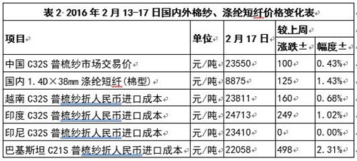 (二)棉紗、滌綸短纖價(jià)格