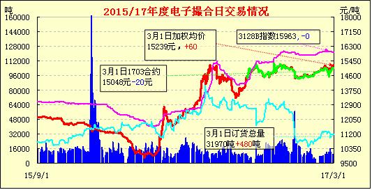 3月1日,電子撮合交易成交量增加,合同均價多數(shù)收漲,活躍交投主要集中于中遠期合同。國內近期到現(xiàn)貨采購棉花有所增加,價格出現(xiàn)100-200的上浮,紗線價格局部上調。紡企訂單和利潤尚可,仍有補庫的潛在需求。如果紡企維持當前庫存,按照當前拋儲基準價15300元/噸,拋儲初期或迎來搶拍,從而導致儲備棉成交價上漲帶動新棉價格上漲,另外不排除部分紡企因搶不到國儲棉,在3月底或難以順利完成新棉和國儲棉的交接,從而不得不采購新棉。