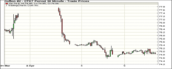 周三紐約期棉整體窄幅收漲,近月合約漲幅在2至39點不等。1705合約收于74.87美分/磅,漲2點;1707合約收于76.66美分/磅,漲5點。今日開盤后買盤返場,刺激1705合約迅速上漲,最高至75.19美分/磅,后回吐漲幅收于74.87美分/磅。1712合約同樣受買盤提振,沖高73.68美分/磅后在83點區(qū)間高位調(diào)整,收于73.39美分/磅。外圍方面,美股美指略有下挫,5月大宗谷物商品價格普遍抬升利好期棉價格。市場關(guān)注本周美棉出口周報,有分析認為本周陸地棉簽約量或?qū)⒎啪彛粨?jù)統(tǒng)計,過去4周美國陸地棉簽約平均量32.15萬包/周、陸地棉裝運量41.02萬包/周。