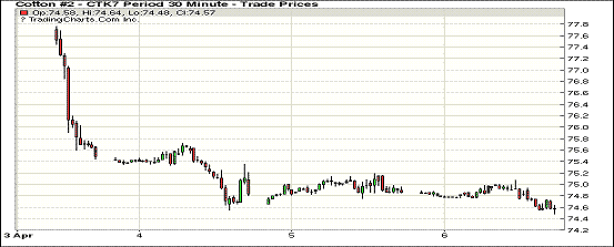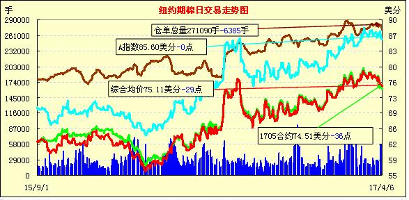 周四紐約期棉近月合約承壓下行,跌幅在9-36點不等。1705合約收于74.51美分/磅,跌36點;1707合約收于76.40美分/磅,跌26點。當日1705合約開盤后開啟震蕩模式,午后遇大量賣盤壓力收跌于74.51美分/磅;1712合約收盤前30分鐘同遭拋盤,收跌于73.27美分/磅。外圍方面,大宗谷物商品近月價格普遍下跌客觀刺激期棉承壓。截至3月30日當周,2016/17年度美棉簽約出口量28.46萬包;截至當日,美國16/17年度累計簽約出口量1313.8萬包。美棉簽約量已超額完成USDA出口預期。有預測稱,接下來17周美棉裝運量均值保持在23.97萬包/周即可完成任務。