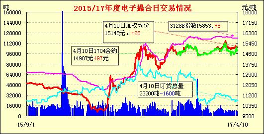 4月10日,電子撮合交易成交量減少,合同均價全線上漲,活躍交投主要集在中遠(yuǎn)月合同?,F(xiàn)貨市場調(diào)整,河北地區(qū)雙29、30級手摘疆棉提貨價格在15800-16000元/噸毛重,地產(chǎn)3128級價格在15300-15400元/噸左右。優(yōu)質(zhì)疆棉市場堅持高價,但低品質(zhì)棉花基本無人問津,部分商家為清理庫存捆綁銷售。長絨棉市場弱勢調(diào)整,整體社會庫存仍相對較多,目前多數(shù)企業(yè)仍僅完成銷售50-70%左右,新疆地區(qū)137級價格在21300元/噸。