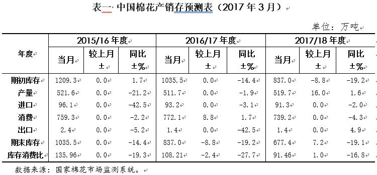 二、國內(nèi)棉花產(chǎn)銷存預(yù)測(cè)