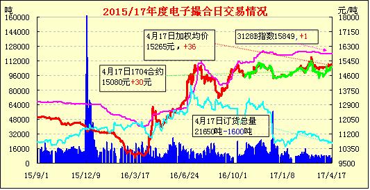 | MA1709 | 15400 | 15415 | 15390 | 15400 | 15397 | 78 | 1560 | -60 | 39520 | 6320 | -40 |