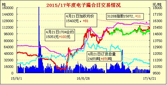 4月21日電子撮合交易成交量減少,合同均價多數(shù)收漲,活躍交投主要集中于中遠(yuǎn)期合同。據(jù)中棉協(xié)的數(shù)據(jù):2017年全國植棉意向面積為4286.1萬畝,同比增長3.79%,比上期預(yù)測增加0.94個百分點。其中,新疆棉農(nóng)植棉意向增加2.39%,較上期回升0.65個百分點;長江流域和黃河流域同比分別增加5.82%和7.44%,增幅較上期分別擴大0.71個百分點和1.92個百分點。各地棉花面積增幅較小,預(yù)計下一年度棉花供需仍是偏緊格局,國儲棉將會繼續(xù)輪出以彌補市場“缺口”。
