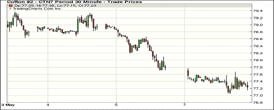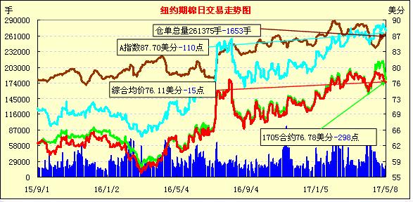 周一紐約期棉延續(xù)上周五走勢(shì)繼續(xù)承壓下行,1705合約收于76.78美分/磅,跌298點(diǎn);1707合約收于77.19美分/磅,跌58點(diǎn)。當(dāng)日1707合約開盤后迅速升至當(dāng)日最高77.77美分,后持續(xù)受賣盤壓力影響,又因缺乏反彈支撐,終收于72點(diǎn)交投區(qū)間底部,報(bào)77.19美分。8日為1705合約最后交易日,近5月最后通知日為5月15日(周一)。據(jù)USDA非官方調(diào)查,17年美國(guó)陸地棉簽約量(棉農(nóng)至貿(mào)易商)已完成預(yù)期種植面積的6%左右,較16年同比增加5%。其中,東南棉區(qū)(已簽約比例11%)尤為活躍,三角洲地區(qū)(10%),較去年分別增加9%和3%。西南棉區(qū)目前簽約比例在4%左右,較去年略減近1個(gè)百分點(diǎn)。