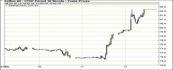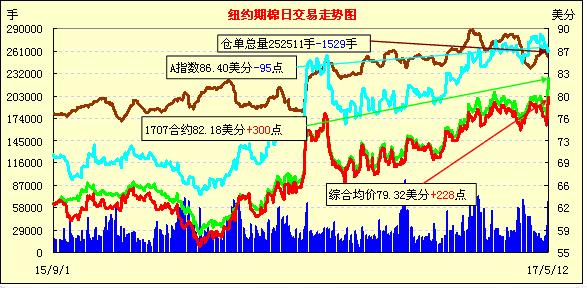周五紐約期棉全線大漲,1707合約收于82.18美分/磅,漲300點(diǎn);1710合約收于77.08美分/磅,漲293點(diǎn)。當(dāng)日1707開盤后窄幅整理,后買盤支撐其成功突破80美分壓力線,隨后又輕松躍過(guò)81美分,收漲于82.18美分/磅。1712合約在收于203點(diǎn)交投區(qū)間中低位,收于73.72美分/磅。受最新美棉出口及裝運(yùn)數(shù)字刺激,有消息表示USDA可能還會(huì)增加其16/17年度美棉出口預(yù)期,目前1450萬(wàn)包的出口預(yù)期已是近12年來(lái)最高紀(jì)錄。