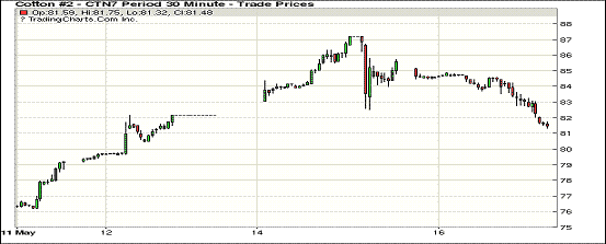 周二紐約期棉價格止?jié)q反跌,近月合約跌幅在65至400點(diǎn)不等;1707合約收于81.32美分/磅,跌400點(diǎn);1710合約收于76.92美分/磅,跌185點(diǎn)。當(dāng)日主力合約1707整日受賣盤打壓一路下跌,回吐此前交易日漲幅收跌于81.32美分;1712表現(xiàn)偏弱且呈窄幅震蕩,收于74.34美分。7/12價差較前一日1000余點(diǎn)縮至698點(diǎn)。