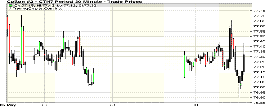 周二紐約期棉橫盤整理;1707合約收于77.26美分/磅,漲17點;1712合約收于72.75美分/磅,跌4點。當(dāng)日整個交易日,1707合約一直在找尋方向,保持在76.90美分至77.67美分之間震蕩,后買盤支撐其收漲于77.26美分/磅。1712合約則在當(dāng)日后半程承壓走低,收跌于72.75美分/磅,連續(xù)兩日凈跌幅47點。當(dāng)日中國市場仍處端午假期,整體較為平靜。1707合約第一通知日為6月26日。