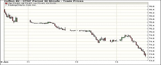 周三紐約期棉繼續(xù)下跌,跌幅超前一交易日;1707合約收于73.50美分/磅,跌98點;1712合約收于70.95美分/磅,跌87點。周三主力12月合約承壓震蕩,并在交易下半場走低。最低價和結(jié)算價均71美分以下,創(chuàng)近三個月來新低。目前美棉種植進度和新花漲勢良好,優(yōu)于去年同期,符合USDA月報預(yù)測下年度美棉大量增產(chǎn)。此外14日美聯(lián)儲宣布加息,美元指數(shù)反彈。