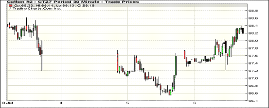 周四紐約期棉繼續(xù)上漲,因美國節(jié)日休假,美棉出口報告發(fā)布推遲一天;1707合約收于75.01美分/磅,漲115點;1712合約收于68.35美分/磅,漲69點。周四新花合約開盤后窄幅震蕩,盤中上漲,收盤前在當日123點區(qū)間上部交投,在兩個交易日內(nèi)累計上漲90點,本周德州西部和西南部降雨充沛,但美棉新花苗情變差,登記庫存減少,良好的短期技術(shù)指標等因素提供了支撐。