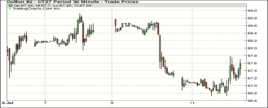 周二美元指數(shù)走低,原油價(jià)格上揚(yáng),紐約期棉小幅反彈,合約上漲8-43點(diǎn);1712合約收于67.67美分/磅,漲38點(diǎn);1803合約收于67.27美分/磅,漲8點(diǎn)。當(dāng)日紐約棉先跌后張,新花合約沖高后回落,但依然處于漲幅區(qū)間內(nèi)。市場(chǎng)關(guān)注即將發(fā)布的7月USDA供需預(yù)測(cè),交易商保持觀望,成交量減少。