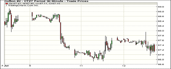 因USDA月度報告上調(diào)全球產(chǎn)量,紐約期棉周三小幅收跌;1707合約收于67.27美分/磅,跌40點;1712合約收于66.94美分/磅,跌33點。當日紐約期棉在USDA月度報告發(fā)布后走低,12月合約收盤前在當日交投區(qū)間底部震蕩,最終收跌。7月USDA月報下調(diào)2017/18年度美棉產(chǎn)量預估20萬包,至1900萬包,但2017/18世界產(chǎn)量上調(diào)至1.15億包,其中主要增增的國家是印度和土耳其,巴基斯坦和墨西哥產(chǎn)量調(diào)減。