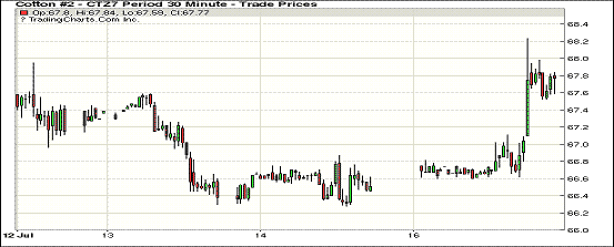 17日紐約期棉市場大幅收漲,1712合約收于67.76美分/磅,漲118點;1803合約收于67.37美分/磅,漲126點。當(dāng)日12月合約早盤在66.6-66.8美分窄幅波動,盤中修整后突破67美分直線洞穿68美分,但因買盤不足在高位盤整未能形成進(jìn)一步突破,最終收于67.76美分。CFTC報告,7月10日一周期棉市場凈多頭頭寸整體有所減少。美棉德州局部地區(qū)開始采摘。
