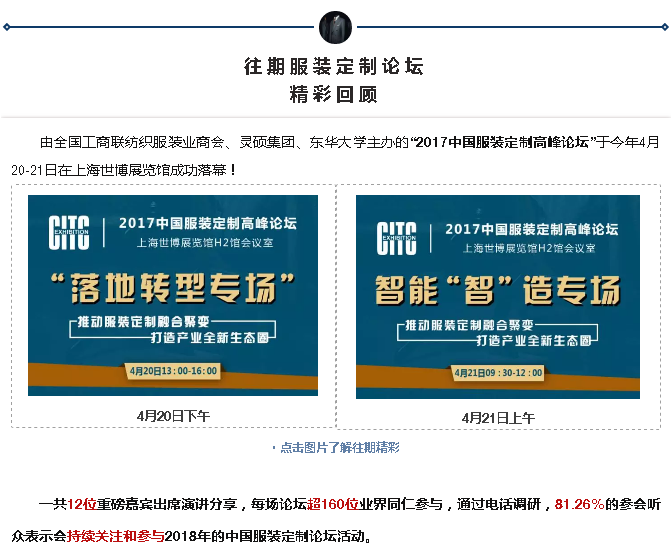 最后,本次活動主要采用民意,并結(jié)合主辦方優(yōu)勢,留足大家互動交流的時間,最終給到大家最滿意的服裝定制論壇會議。