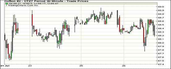 周三紐約期棉小幅下跌,回吐前一日漲幅,成交低迷;1712合約收于68.40美分/磅,跌43點;1803合約收于68.12美分/磅,跌44點。當日紐約期棉平開后經歷了短暫的上漲,并達到當日最高價,回落后全天大部分時間在壓力下交投。周三美聯儲表示維持利率不變,市場關注即將發(fā)布的USDA美棉出口周報。