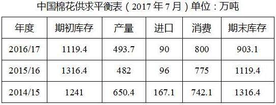 2017年上半年,全球經(jīng)濟(jì)溫和復(fù)蘇,我國(guó)經(jīng)濟(jì)運(yùn)行保持在合理區(qū)間,穩(wěn)中向好態(tài)勢(shì)趨于明顯。紡織服裝出口持續(xù)增長(zhǎng),保持較好的傳統(tǒng)競(jìng)爭(zhēng)優(yōu)勢(shì)。6月,全國(guó)大部地區(qū)氣象條件利于棉花生長(zhǎng)發(fā)育,整體長(zhǎng)勢(shì)好于去年,病蟲害發(fā)生程度較輕,中國(guó)棉花協(xié)會(huì)預(yù)計(jì)全國(guó)植棉面積為4413.2萬畝,同比增長(zhǎng)6.86%,預(yù)計(jì)總產(chǎn)量為538.5萬噸,同比增8.57%,較上期預(yù)測(cè)增加9.4萬噸。紡織行業(yè)處于傳統(tǒng)淡季,棉紗價(jià)格整體下滑,產(chǎn)銷環(huán)比均有下降,經(jīng)營(yíng)壓力增大。企業(yè)用棉以競(jìng)拍儲(chǔ)備棉為主,棉花現(xiàn)貨價(jià)格穩(wěn)中趨降;國(guó)際棉價(jià)受多種因素影響,跌幅大于國(guó)內(nèi),國(guó)內(nèi)外棉花現(xiàn)貨差價(jià)繼續(xù)擴(kuò)大。