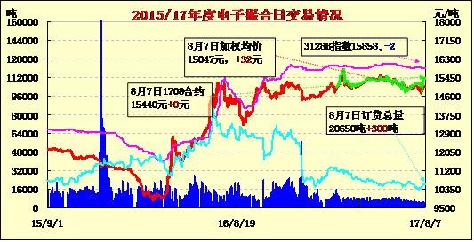 8月7日電子撮合交易成交量減少,合同均價多數(shù)收漲,活躍交投主要集中于中遠(yuǎn)期合同?,F(xiàn)貨市場調(diào)整,山東、河北地產(chǎn)3128級提貨出廠價格在15100-15300元/噸毛重,實際商談略有優(yōu)惠,商家清理庫存心態(tài)為主。國儲棉轉(zhuǎn)售報價多為拍儲提貨后加價200-300元/噸左右,一商家儲備疆棉長度27-28CM,強度25-27報價在14900-15100元/噸。長絨棉市場價格持續(xù)下滑,河南一商家兵團137A級出廠提貨報價在22700元/噸毛重,地方產(chǎn)價格在22200元/噸,實際商談仍優(yōu)惠。