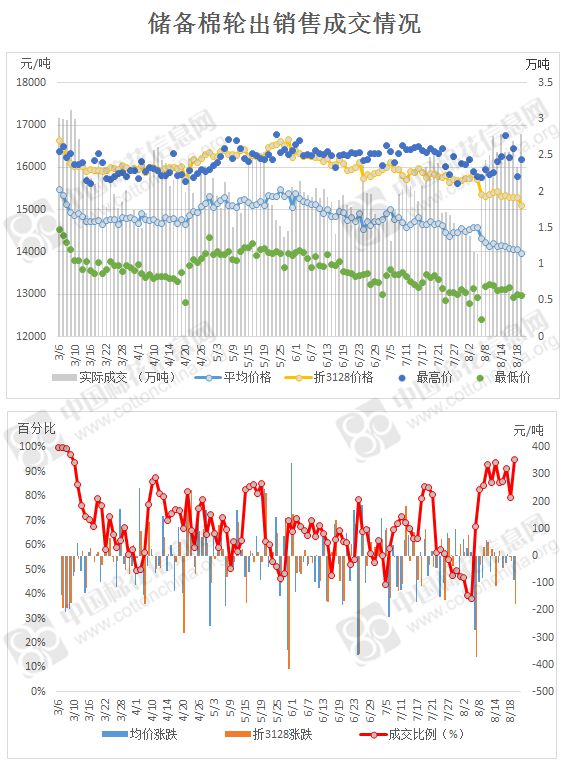 2017年3月6日至8月21日,儲(chǔ)備棉輪出累計(jì)成交242.64萬(wàn)噸,成交率68.52%。