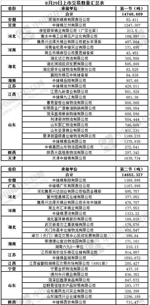 8月29日兩節(jié)共計(jì)輪出儲(chǔ)備棉29400.936噸。