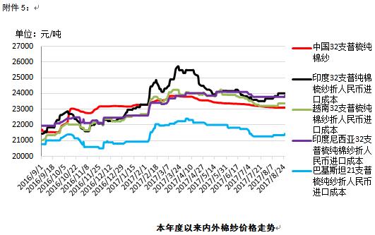 附件5:本年度以來國內(nèi)外棉紗價格走勢圖