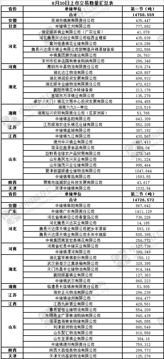 8月30日兩節(jié)共計(jì)輪出儲(chǔ)備棉29477.131噸。