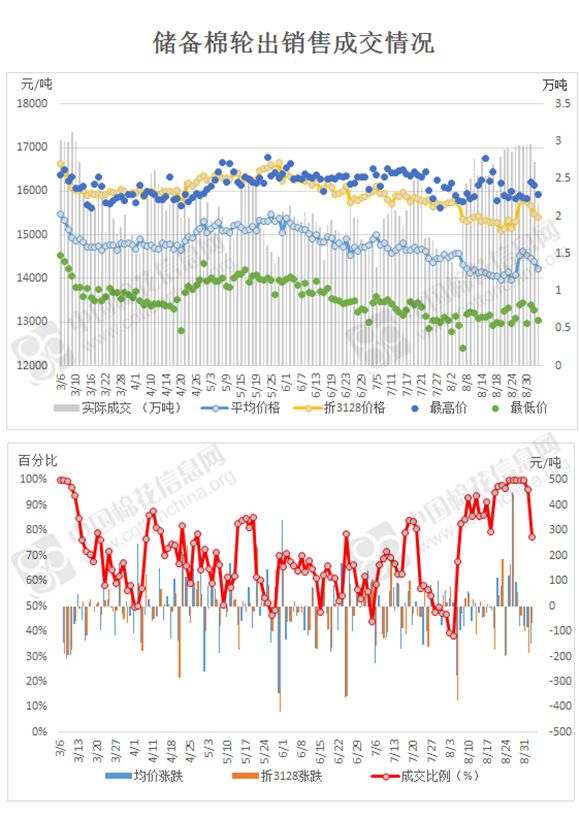 2017年3月6日至9月4日,儲(chǔ)備棉輪出累計(jì)成交270.93萬噸,成交率70.67%。