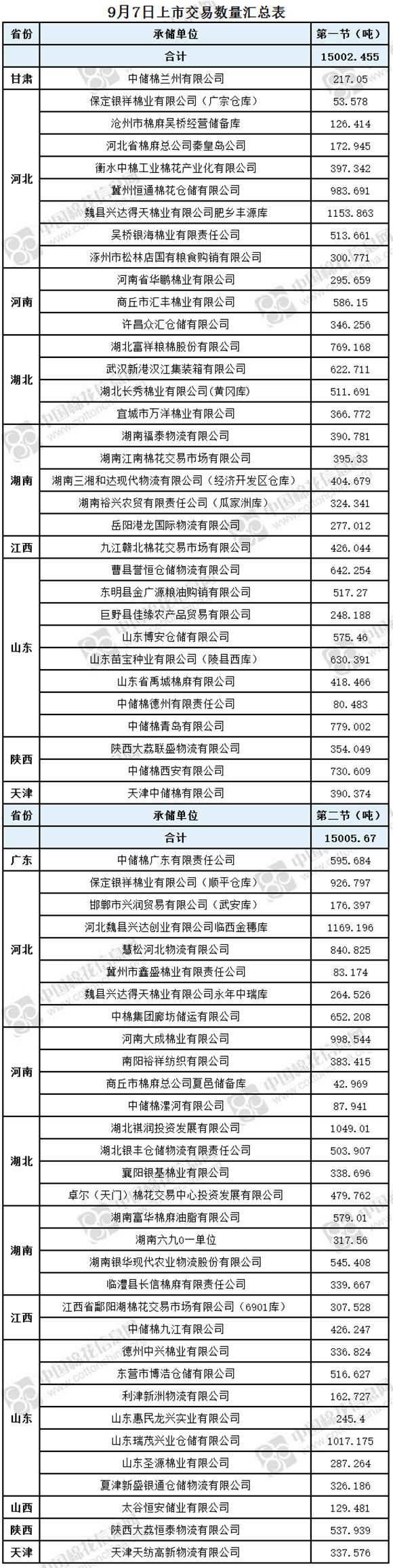 9月7日兩節(jié)共計(jì)輪出儲備棉30008.125噸。