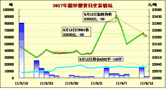 9月12日棉紗期貨成交及持倉排名表