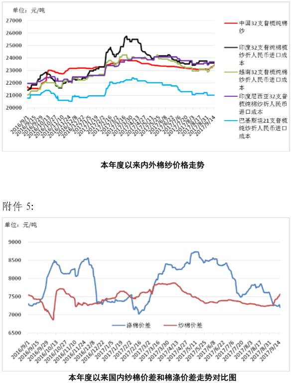 附件4:本年度以來國(guó)內(nèi)外棉紗價(jià)格走勢(shì)圖