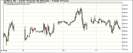周三紐約期棉繼續(xù)保持調(diào)整偏弱格局,合約有漲有跌,;1712合約收于68.73美分/磅,跌22點(diǎn);1803合約收于68.30美分/磅,跌8點(diǎn)。當(dāng)日主力合約小幅高開并短暫保持,1712合約和1803合約最高分別達(dá)到69.45和68.90后回落,之后主力合約雖一度反彈至69美分以上,但未能持續(xù),收盤前再次下跌并收低。本周德克薩斯棉區(qū)吐絮率為60%,近五年平均為71%,落后11%,但德州新花采摘進(jìn)度較往年加快,達(dá)到27%,往年為19%。